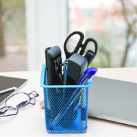 Klip Tempat Pena Escritorio Hitam Persegi Promosi Tempat Pena Jaring Logam Tempat Pena Perlengkapan Kantor
